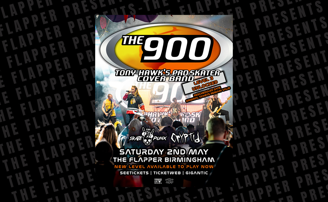 The 900 are bringing the very best of the THPS soundtrack back to Birmingham this May! Plus support from The Skate Punx and Cryptid.